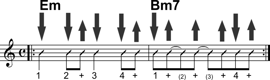 Für den Originalrhythmus von A horse with no name von America Gitarre wird die Rhythmik über dem Bm7 Akkord noch geändert.