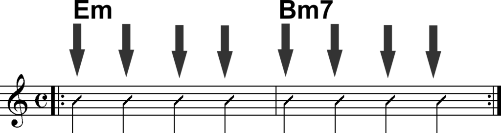 In der nächsten Stufe, spielen wir die Wechsel in einem einfachen Rhythmus.