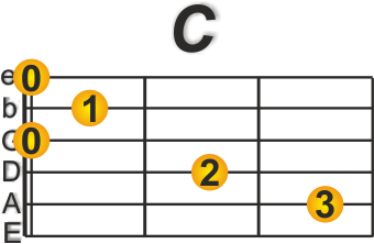 Der C-Dur Akkord wird ab der A-Saite angeschlagen.