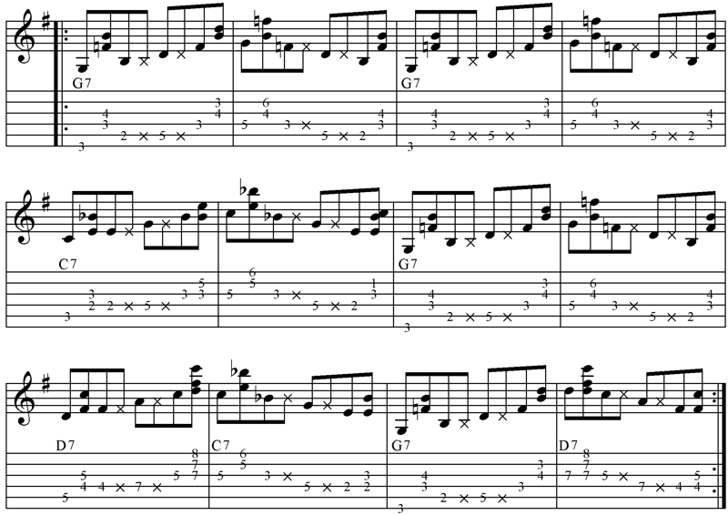 Um unsere Boogieline zu bauen brauchen wir ein paar Dominat 7 Arpeggios.