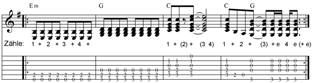 Dieser wird immer 3 mal gespielt in der Strophe genauso im im Solo