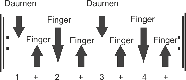 Die Saiten werden dabei im Takt des Stückes angeschlagen.