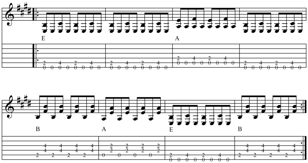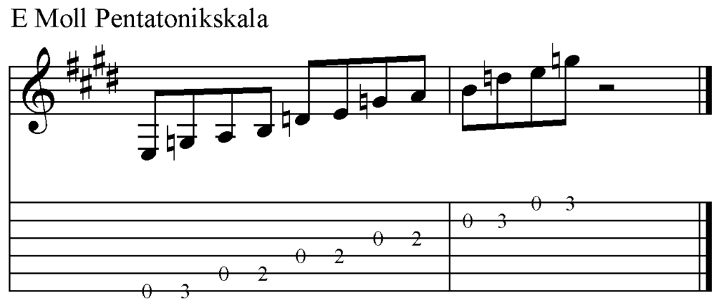 Um den Rhythmus etwas aufzupeppen, setzen wir die Em Pentatonik mit ein.