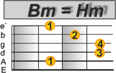 In der Bridge, spielt man 2 Takte A (siehe oben) und anschliessend 2 Takte Bm